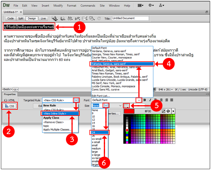 ถ้าเลือก <New CSS Rule> จะเป็นการสร้าง CSS ใหม่ ซึ่งสามารถนำไปใช้ซ้ำได้ มีวิธีการดังนี้