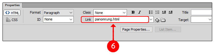 6 แสดงชื่อไฟล์เว็บเพจที่ต้องการเชื่อมโยง