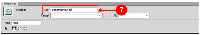 Map Link ให้เรากำหนดขอบเขตการลิงค์บนภาพกราฟิกขนาดใหญ่ ซึ่งเราสามารถใช้เครื่องมือ จาก Property Inspector กำหนดพื้นที่ิลิงค์เป็นรูปสี่เหลี่ยม วงกลมหรือรูปหลายเหลี่ยมก็ได้
