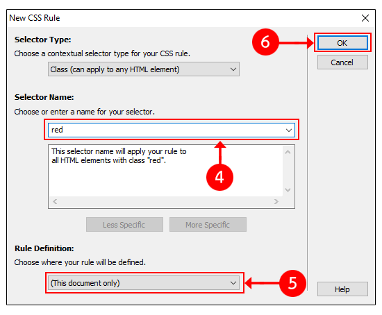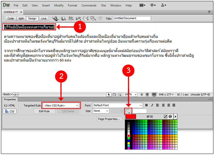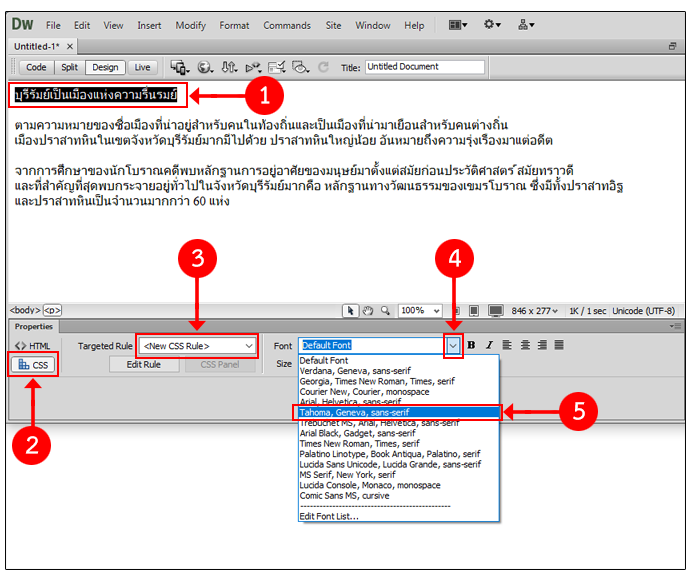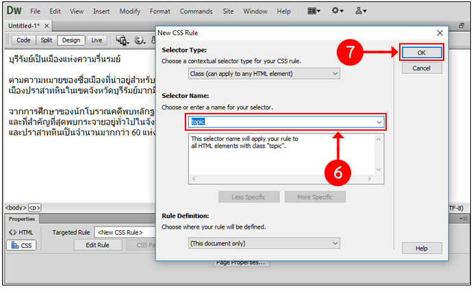 ถ้าเลือก <New CSS Rule> จะเป็นการสร้าง CSS ใหม่ ซึ่งสามารถนำไปใช้ซ้ำได้ มีวิธีการดังนี้