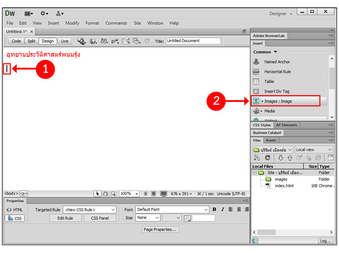 1 เลือกตำแหน่งวางภาพบนหน้าเว็บเพจ