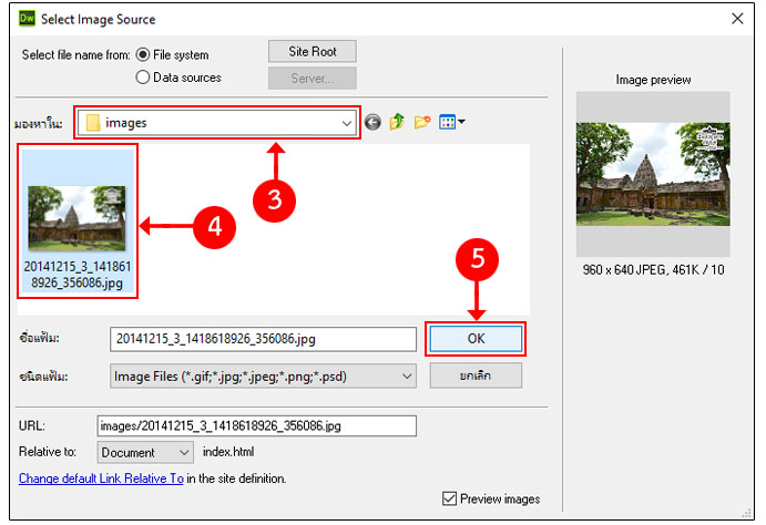 5 คลิกปุ่ม OK เพื่อตกลงการเลือกภาพ จากนั้นจะปรากฏหน้าต่าง