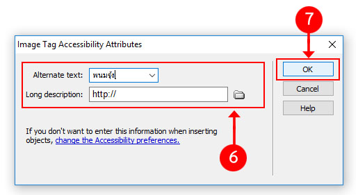 7 คลิกปุ่ม OK ภาพแสดงบนหน้าเว็บเพจ