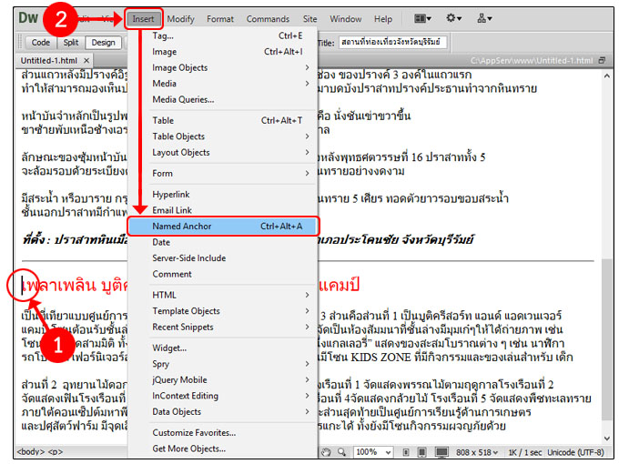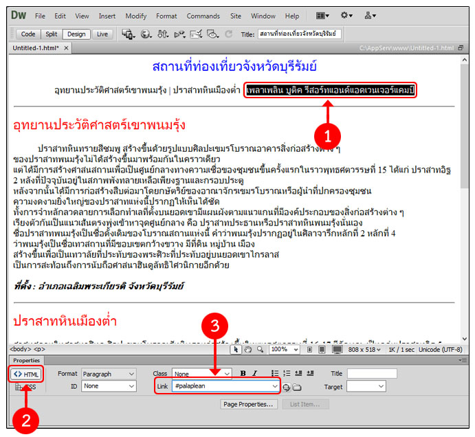 การสร้างการเชื่อมโยงภายในเว็บเพจเดียวกัน
