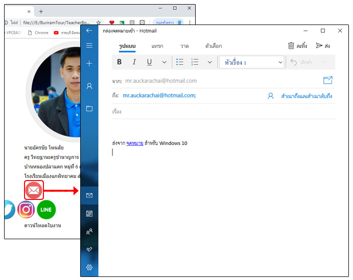 แสดงขอความที่เรากำหนดเป็นลิงค์ส่งอีเมล์